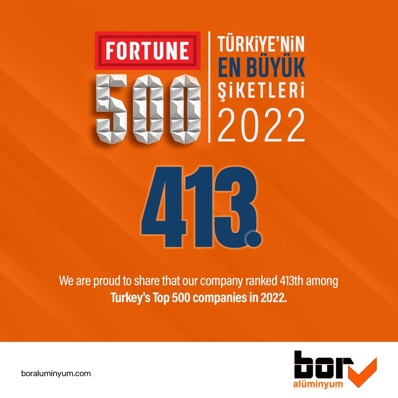 We are delighted to announce that Bor Alüminyum has reached a significant milestone by securing the 413th position among Turkey’s top 500 companies in 2022. This remarkable achievement reflects our commitment to excellence, resilience in the face of challenges and the hard work of our dedicated team. Reflecting growth: At Bor Alüminyum, we are proud